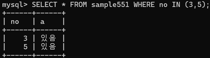 IN을 사용하면 집합 안의 값이 존재하는지 조사할 수 있음