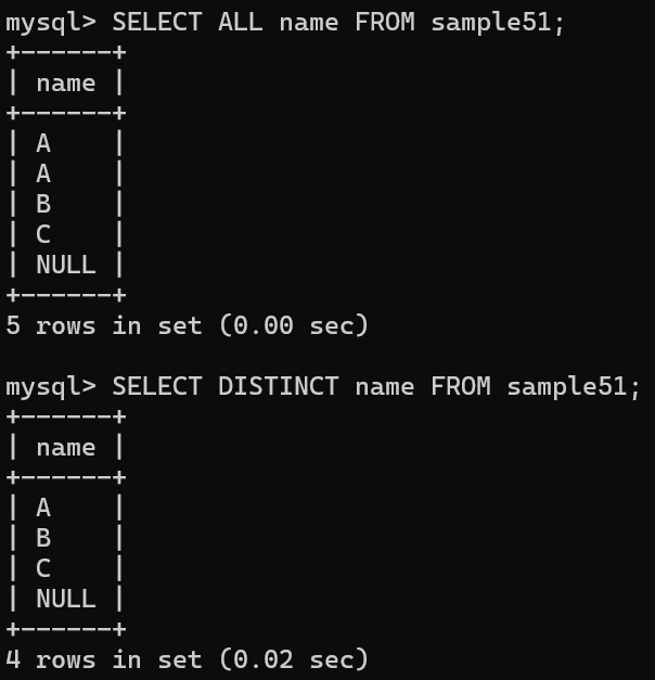 ALL 은 중복 유무와 관계없이 문자 그대로 모든 행을 반환