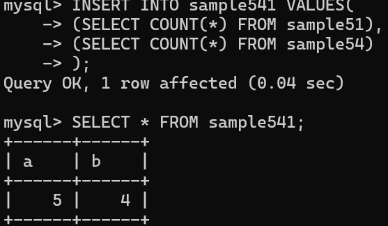 SELECT가 반환하는 열 수와 자료형이 INSERT할 테이블과 일치하면 됨