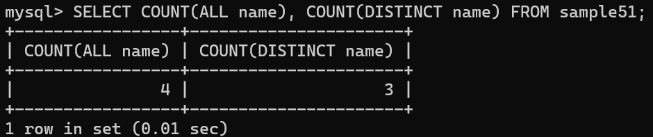 → 집계함수의 인수로 DISTINCT를 사용할 수 있음
