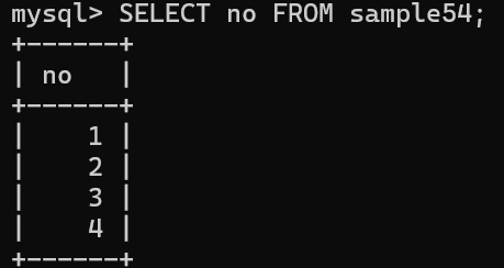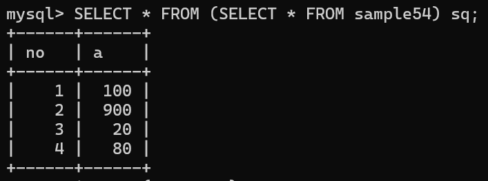 sample54 테이블에서 a 열 값이 가장 작은 행을 삭제하려 함