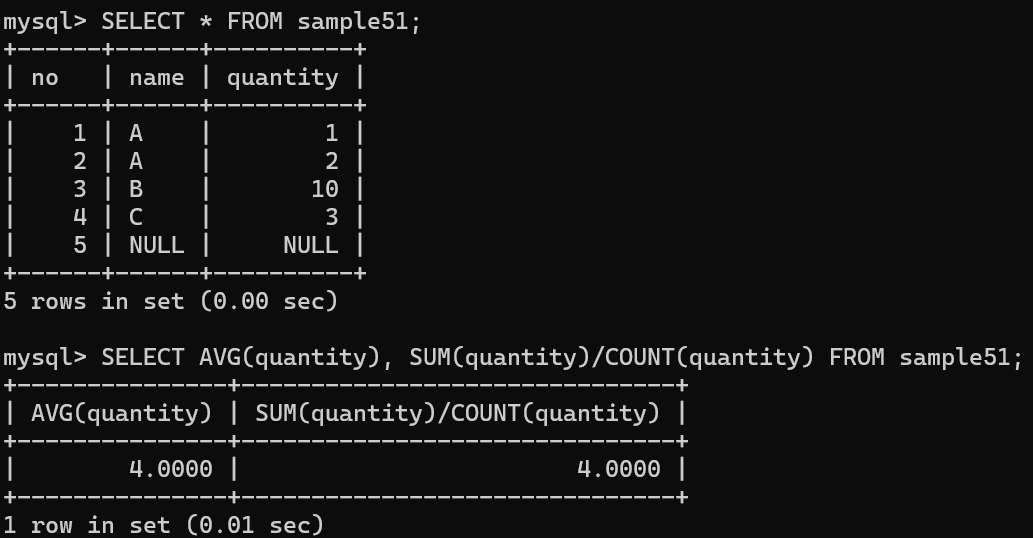AVG = SUM / COUNT